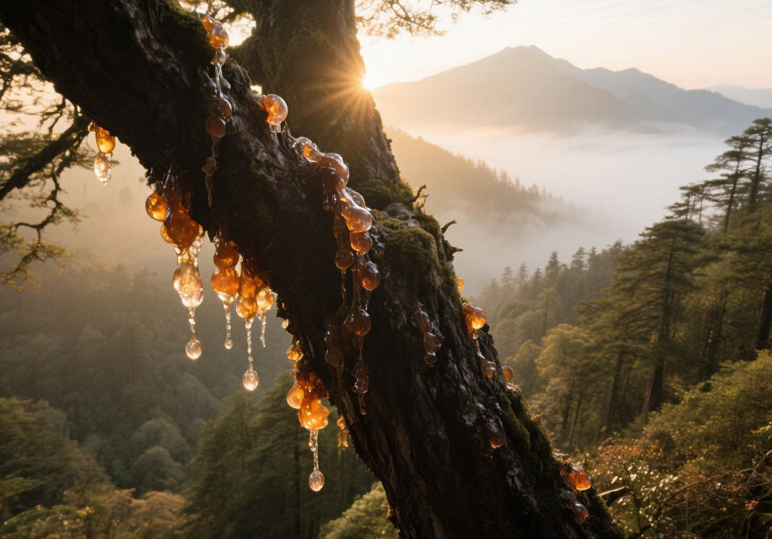 神農(nóng)架老桃林生長在“三高”生態(tài)環(huán)境中:高海拔帶來的晝夜溫差(可達(dá)16℃),讓桃樹在白天充分合成膠質(zhì),夜晚緩慢凝結(jié),膠質(zhì)密度更高;高濕度的山間云霧,為膠質(zhì)補(bǔ)充水分,使其質(zhì)地更飽滿;高純度的生態(tài)環(huán)境(無工業(yè)污染、土壤富硒),讓桃樹無需對抗有害物質(zhì),能將更多養(yǎng)分用于膠質(zhì)分泌。經(jīng)檢測,這里的桃膠膠質(zhì)含量達(dá)68%,遠(yuǎn)超普通桃膠的45%,濃稠的質(zhì)地肉眼可見——干燥時顆粒堅硬緊實,泡發(fā)后能吸附自身重量18倍的水分。