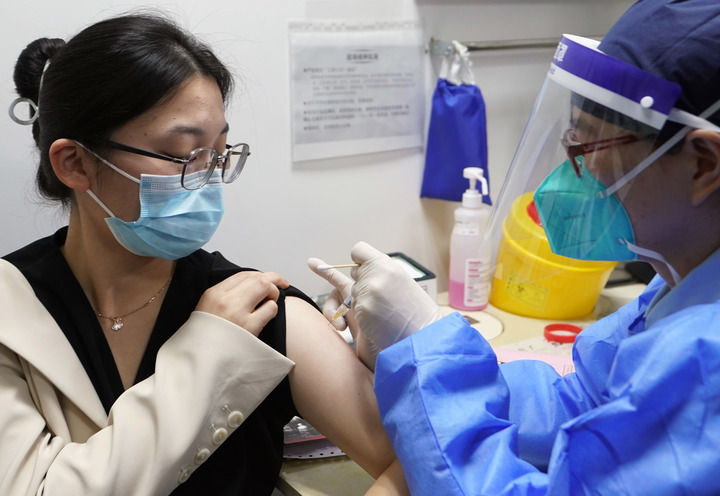 一名女士在復(fù)旦大學(xué)附屬婦產(chǎn)科醫(yī)院接種九價HPV疫苗(2022年11月11日攝)。新華社記者劉穎攝