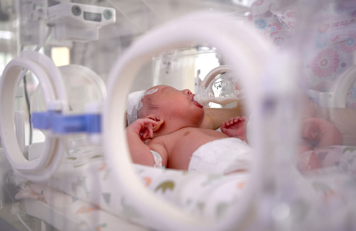 2024年6月1日,在西安國際醫(yī)學(xué)中心醫(yī)院新生兒科病房,護(hù)士為新生兒喂奶。新華社記者劉瀟攝